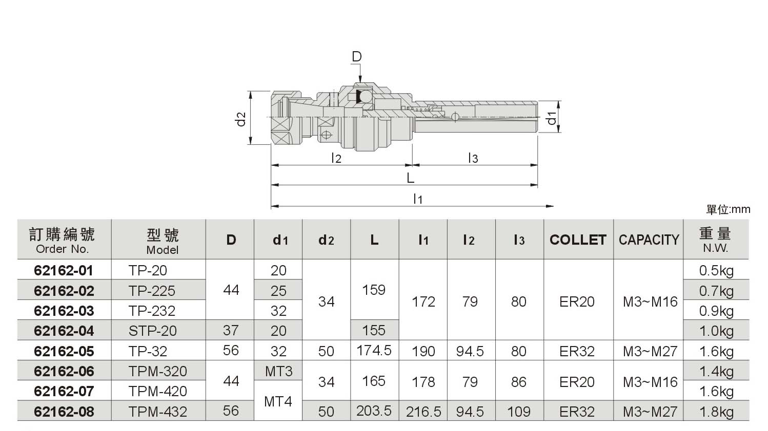 直柄彈性筒夾本體(M型)